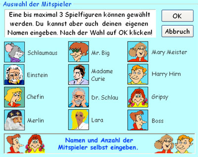 Jedes einzelne Lernspiel dieser Programmpakete kann im Übungsmodus (beliebige Aufgabenzahl wählbar) oder im Testmodus oder mit dem Würfelspiel betrieben werden. Im Testmodus verlangt das Programm vor Spielbeginn zusätzlich die Eingabe einer bestimmten Zeit. Innerhalb dieser Zeit sollten so viele Aufgaben wie möglich gelöst werden.