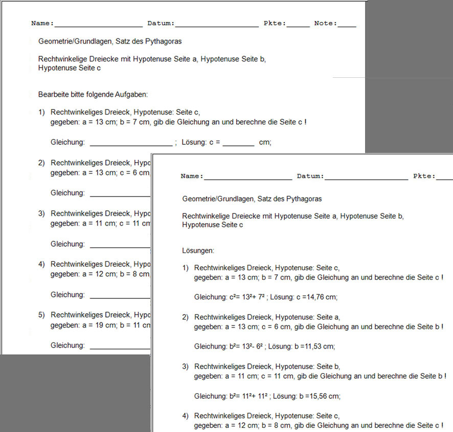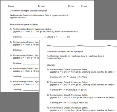 Hier geht es um die Anwendung des Satzes des Pythagoras. In einem rechtwinkeligen Dreieck kann eine Seite berechnet werden, wenn die anderen beiden bekannt sind. Dabei kann der rechte Winkel beliebig dem Winkel Alpha, Beta oder Gamma zugeordnet werden. Man kann eine Zuordnung oder eine beliebige Kombination aller Zuordnungen wählen.