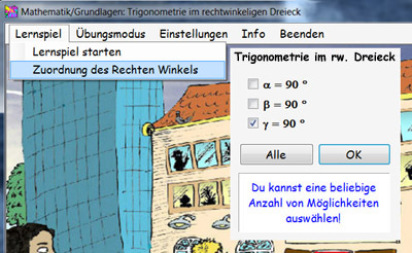 Der rechte Winkel kann beliebig dem Winkel Alpha, Beta oder Gamma zugeordnet werden. Man kann eine