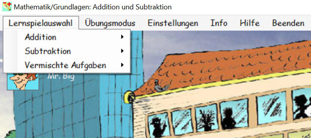 - Textaufgaben: Wird ein positiver Zahlenbereich gewählt, bietet das Lernprogramm auch Textaufgaben an.