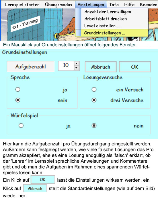 Bis zu 3 Spieler können gleichzeitig mit dem Programm arbeiten und werden am Ende getrennt bewertet. Die Leistungen eines jeden kann ausgedruckt oder als Textdatei gespeichert werden.